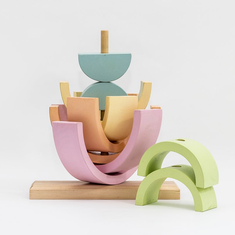 Su madera, imperfecta y natural, les da información sensorial muy valiosa. Sus piezas les ayudan a diferenciar formas y colores. Manipulándolo ganan destreza y coordinación. A través de él van comprendiendo conceptos complejos como el equilibrio, la simetría y la resistencia. Les abre la puerta de par en par al juego simbólico, a construir escenarios e imitar situaciones de la vida real.